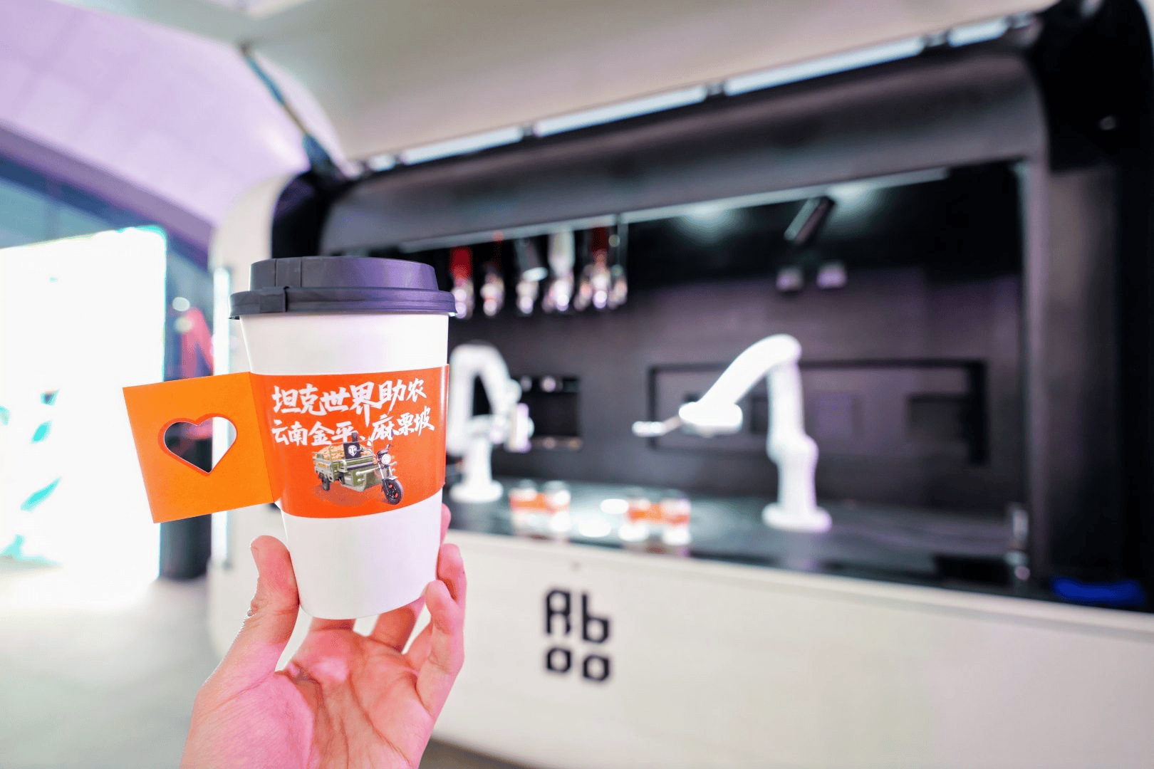 观赛累了?来杯免费饮品续能!现场不仅有香醇咖啡,还有特色茶饮,这款茶饮的茶叶可不一般!它们来自云南金平、麻栗坡两县,今年八月《坦克世界》发起助农帮扶,玩家们在线助力,官方为当地老乡捐赠了200辆农用电动三轮车,解决了收获运输的大难题。为了致谢,老乡们把当地古树茶回赠过来,才有了这杯带着质朴情谊的定制特饮。喝着茶看着比赛,每一口,品味到的都是咱们与老乡之间,一份跨越山河的温暖回响!