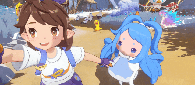 Flash时代的前作,从精灵到场景,主流的展现形式是2D贴图,战斗是相对传统的回合制数值跳动,对比之下,《洛克王国:世界》则是在各方面演出迭代了更现代的方向,3D化的精灵和场景,很自然地,第一眼都成了大家讨论度最高的内容。