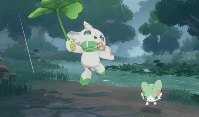 例如精灵春兔下雨天会打起伞,春团这时会依偎过来取暖