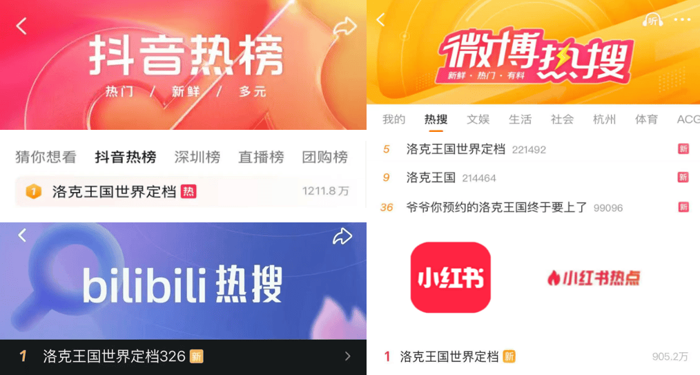 昨天直播结束没多久,“洛克定档”的消息在B站、小红书、抖音都直冲热度榜第一名,几个话题一同占领了微博热搜的前列......
