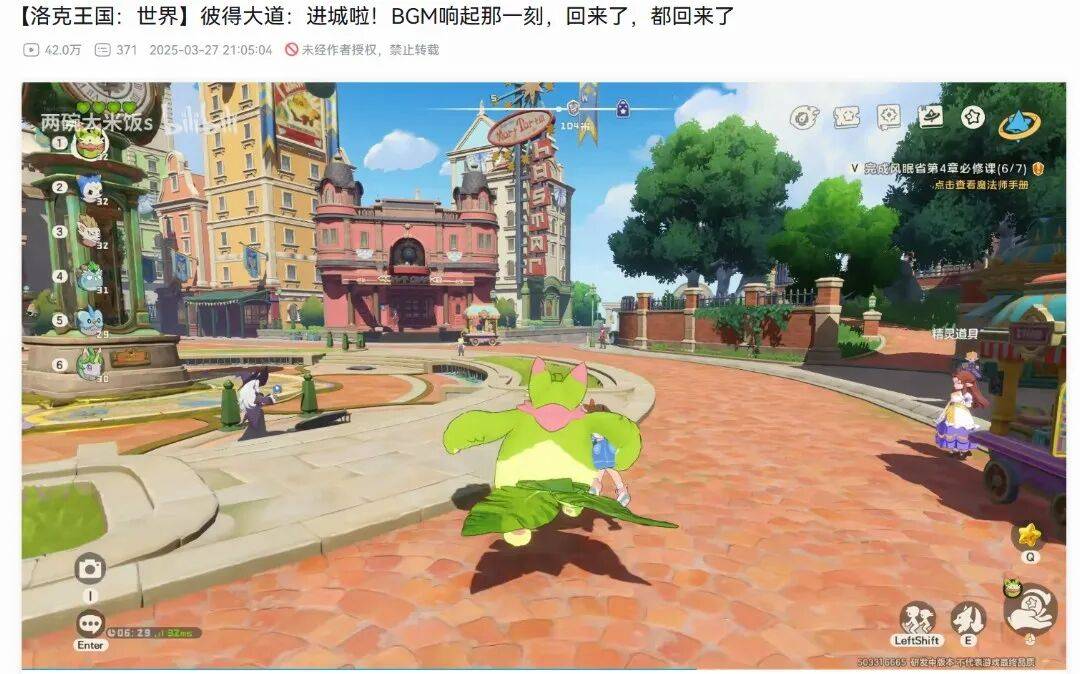 我现在仍记得首测阶段的惊喜感,有种多年前初次迈入《洛克王国》的感觉,看见什么都觉得新鲜,例如页游有个地方叫“彼得大道”,在《洛克王国:世界》里则成了个挺后期的地点,当时不少玩家越级前往,主要就是想看下记忆中的场景3D化后到底是什么样。