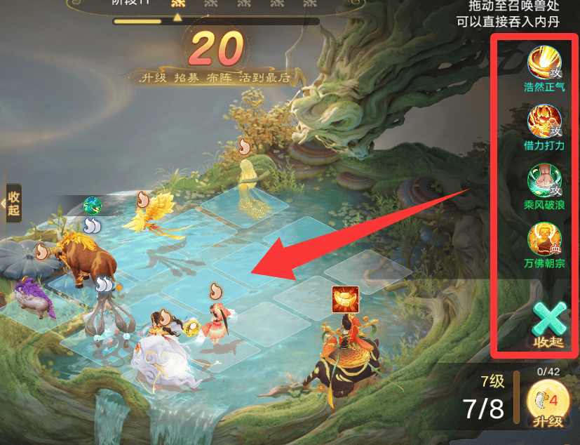 内丹可以直接拉到召唤兽身上,直接吞入内丹即可,召唤兽布阵也分为上阵区和支援区,用牙币升级等级,可以上阵更多召唤兽。