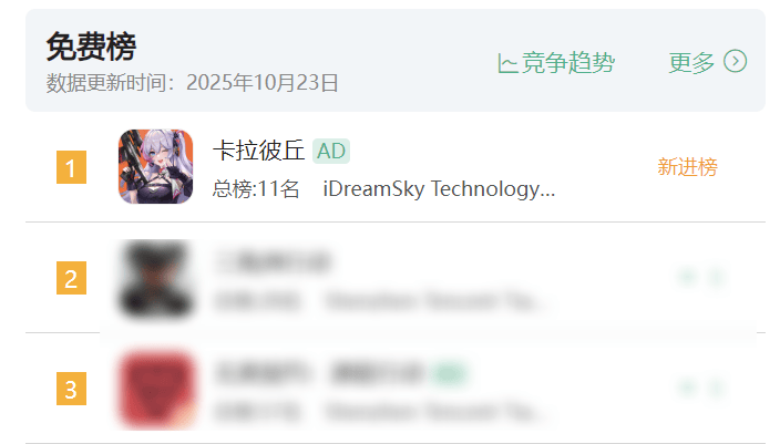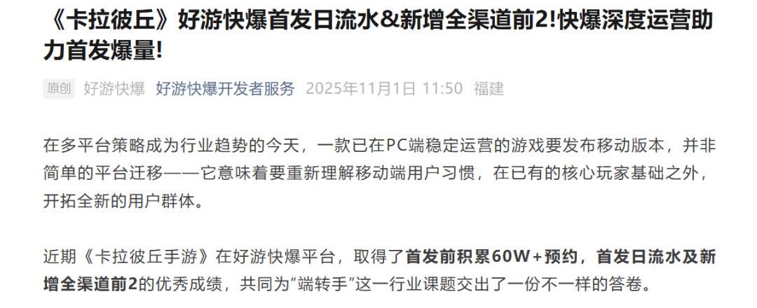 这份踏实,不再来自之前那样的「未来可期」,而是来自手游上线后实打实的成绩:在没做大规模宣发的情况下,《卡拉彼丘》手游上线当天登顶iOS游戏免费榜,而这还只是表面——在游戏首周100万的日活里,有80%都藏在安卓端。