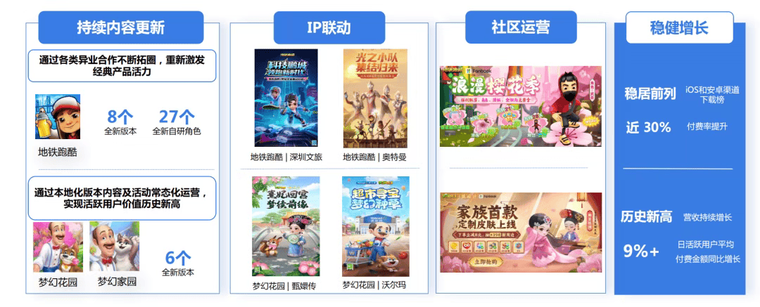 你看我们的《地铁跑酷》《机甲战队》《梦幻花园》,虽然我们是发行方,但也深入游戏,推出了我们自己的原创角色,并取得了不错的商业化成绩。