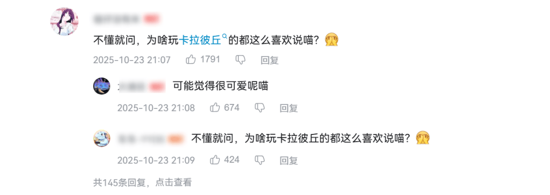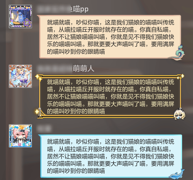 目前这个梗已经形成了独特的小圈子氛围,是非常不错的文化现象,证明我们的游戏逐渐被用户认可——只要你讲喵语,大家就知道你在玩什么。