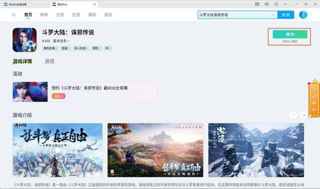 方法一:启动MuMu模拟器,在桌面的游戏中心搜索“斗罗大陆:诛邪传说”,点击预约,待游戏上线后即可开始畅玩。