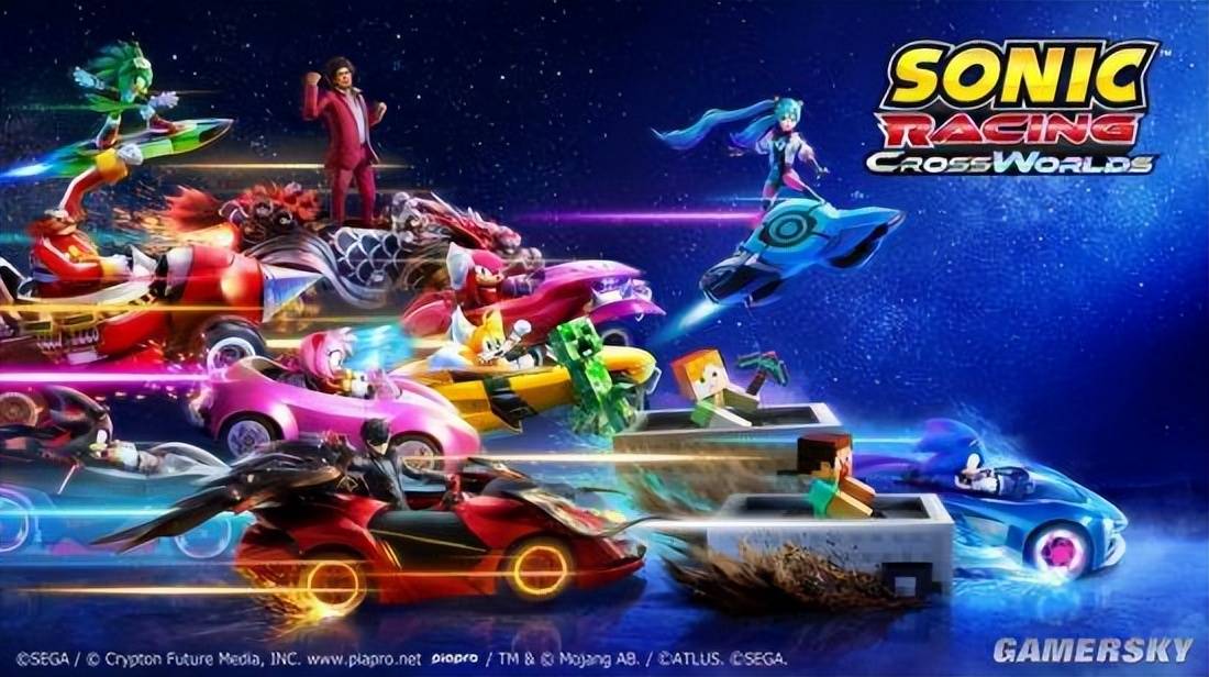 在《索尼克赛车 交叉世界》发售时,游戏的一大亮点便是与其他经典IP角色的“梦幻联动”。在这里,你不仅能看到苦力怕开车追杀史蒂夫,也能看到初音未来和春日一番两个画风全然不同的角色同台竞速。
