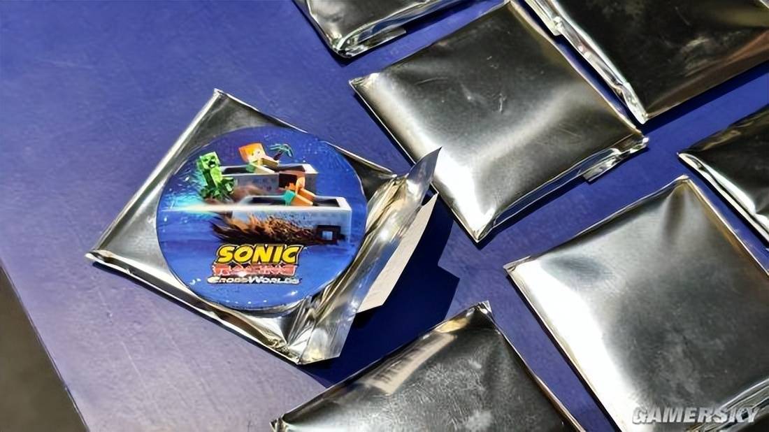 当然,在紧张刺激的比赛之余,现场也少不了各种试玩打卡活动。为了不让玩家空手而归,只要是现场试玩游戏或参与比赛,都可免费领取索尼克赛车马口铁徽章(随机一款)。