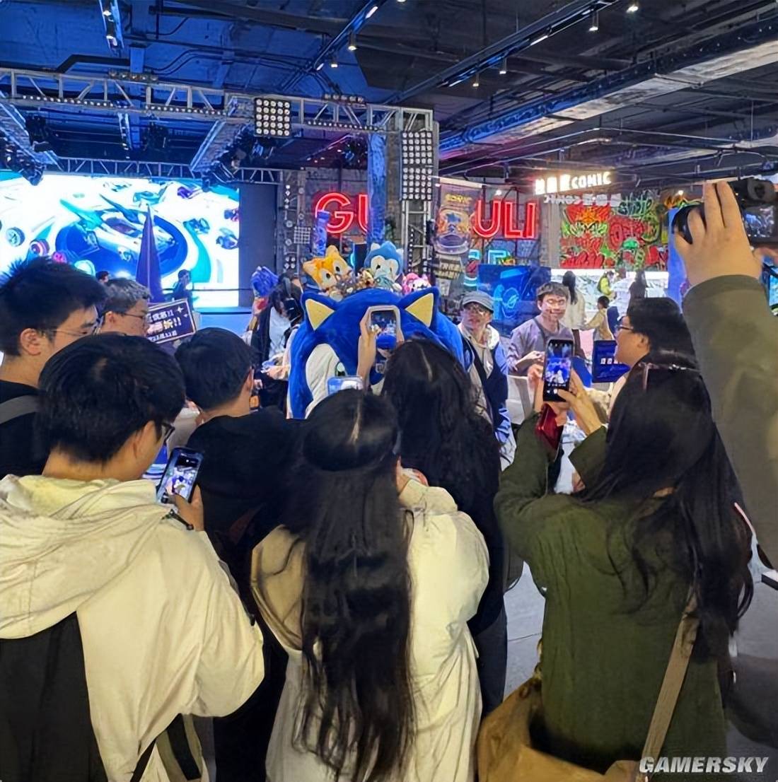 不仅是COSER小姐姐,索尼克人偶也难逃玩家们的“逮捕”,被热情的玩家团团围住,直接沦落成了合影工具人。