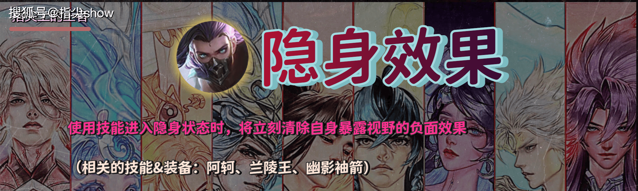 兰陵王、阿轲、幽影袖箭,进入隐身时,会立即清除可以暴露视野的效果。