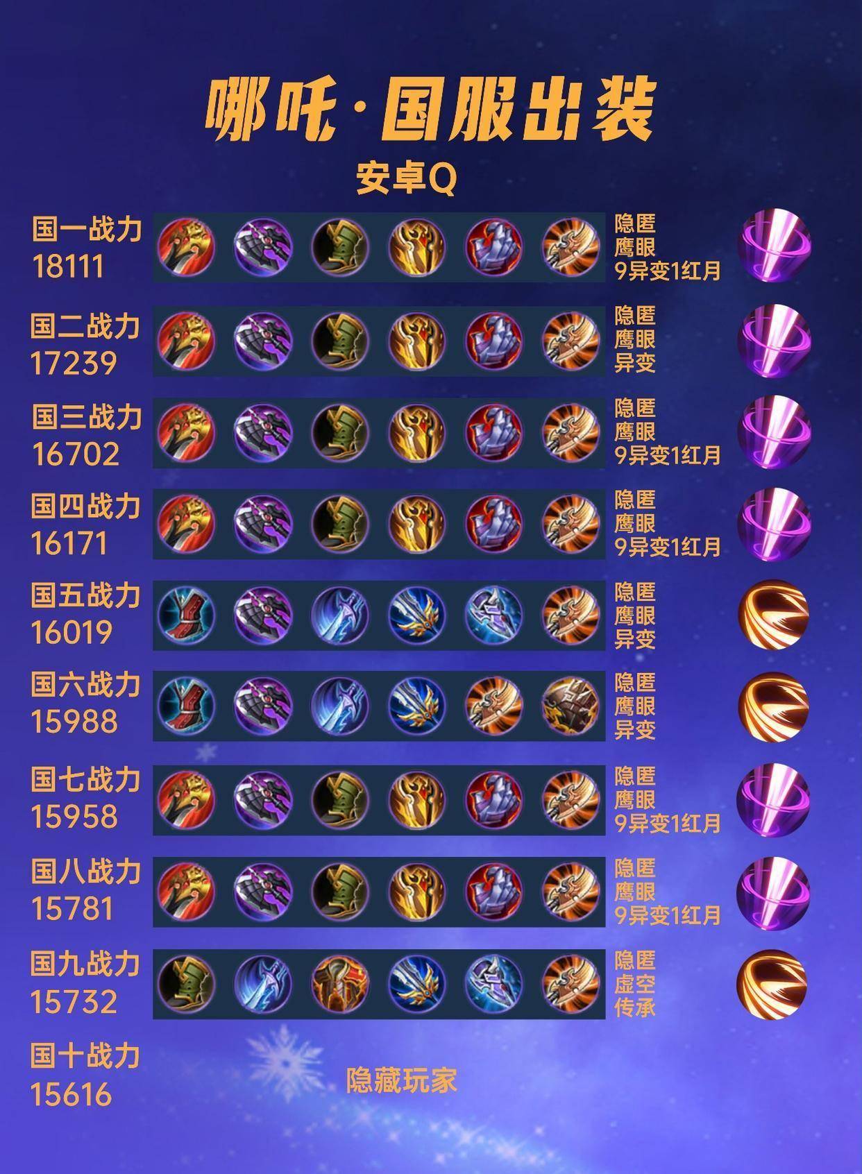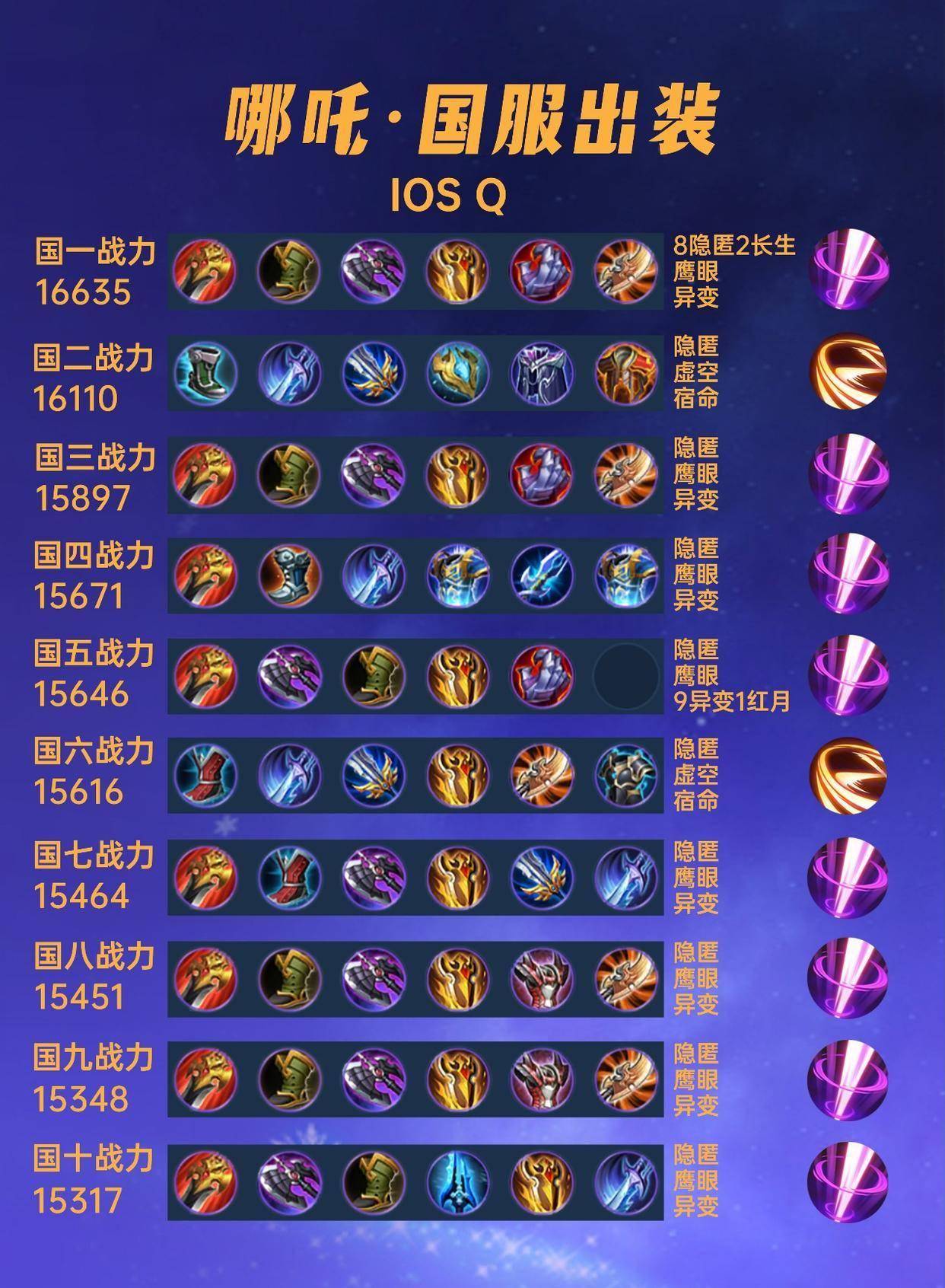 这一篇文章我们来看一下40位国服哪吒的出装铭文汇总。