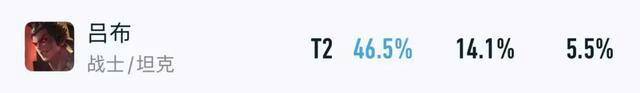 以上是吕布目前的巅峰赛数据,不仅胜率只有46.5%,排在对抗路的垫底位置,就连出场率都仅剩14.1%,对比上个赛季足足缩水9%,说明真爱玩家都开始放弃吕布了。