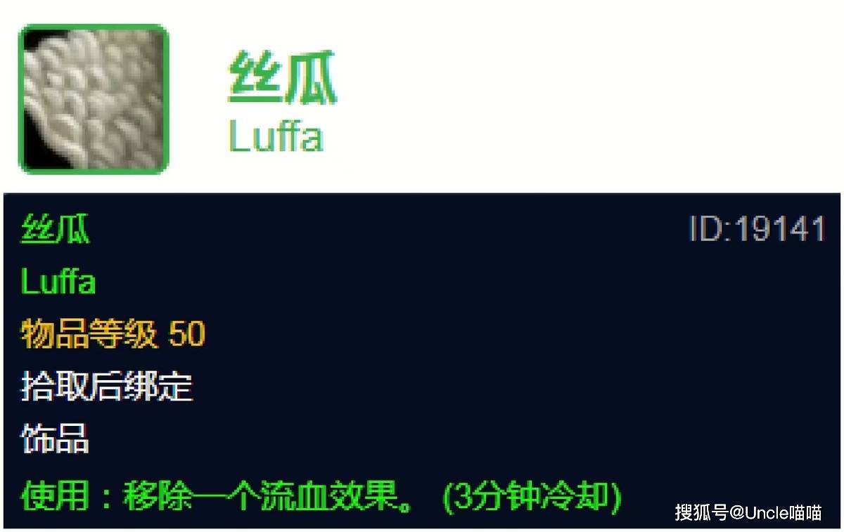 既然谈到盗贼了,喵叔运转飞快的小脑袋瓜子就想起了这款丝瓜,灼热峡谷任务“熏火龙”奖励,这东西地球时代对于热衷于PVP的盗贼绝对神器,毕竟身负流血伤害的盗贼一般都会躺板板,而能移除流血效果且CD只有3分钟的丝瓜就让你无后顾之忧了,可谓超模神器,你值得拥有!那么最后的灵魂拷问给到各位大兄弟,以上6大最具超模实力的绿色饰品,有没有玩家全部拥有过呢?我们评论区见!