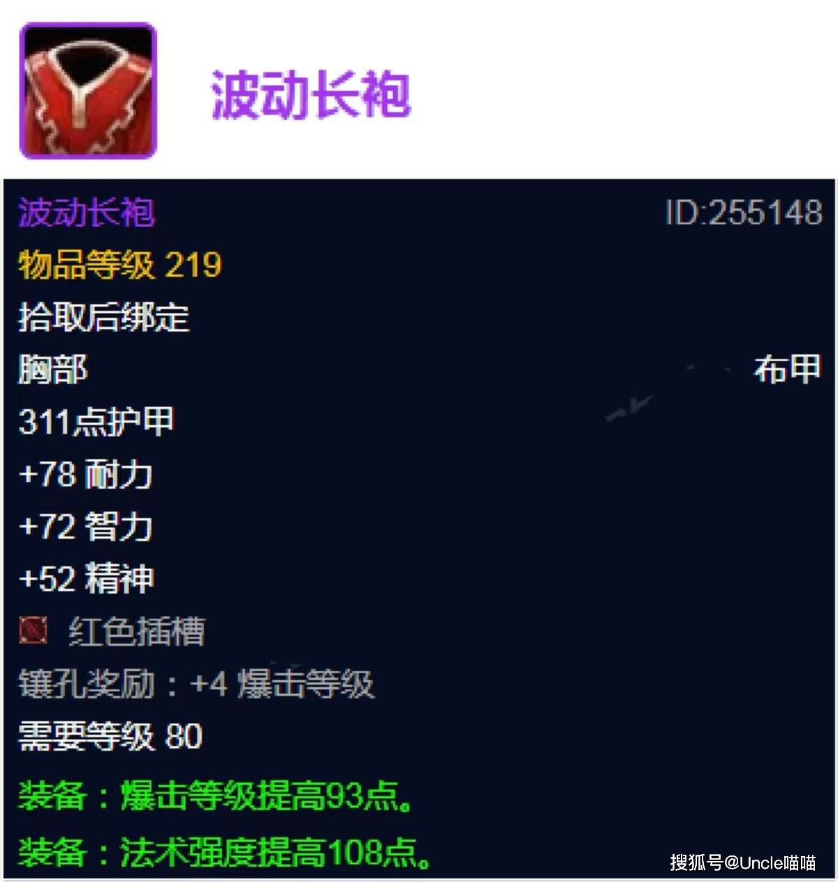 今日份最后的席位喵叔还是思考了许久的,实不相瞒,今天喵叔以迅雷不及掩耳之势,回了趟母老虎娘家乡,品尝了下徽派美酒和臭鳜鱼的芬芳,心情有所波动,所以最后席位给到了波动长袍,目前这东西在命中达标的前提下,可谓是最好的布甲输出衣服了,感觉这个部位用它平替套装还是非常有优势的,不知道各位兄弟意下如何?那么最后的灵魂拷问给到各位大兄弟,你目前还觉得熔火之心有哪些热门的极品紫色装备呢?我们评论区见!