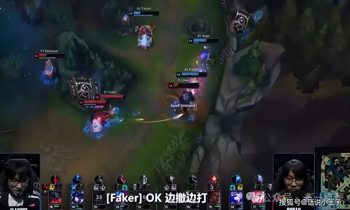 在LCK发布的纪录片中有一个片段是,T1与AL在决胜局中,圣枪哥TP到下路出现了语音错位。LCK这个纪录片所传达的意思就是:Faker说阵型冲散,必须赶紧撤离。于是Oner不听命令,说自己撤离不了。紧接着便是小吕布保命判断,拯救了整支队伍。突出了一个Faker的梅尔毫无作用,Faker在这波团战中也是毫无贡献。