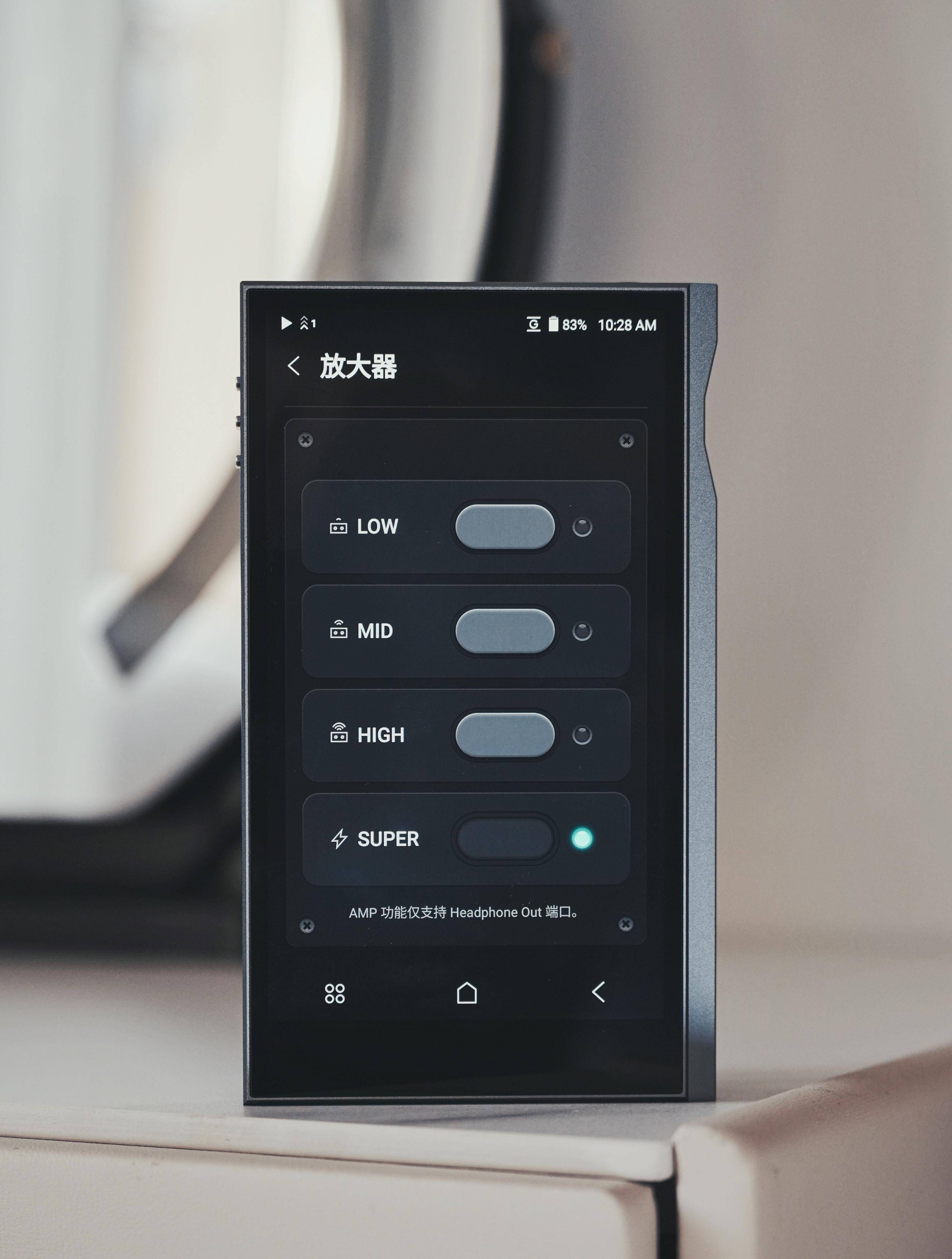 关于音频硬件阵容,它的音频芯片组是双DAC ES9039MPRO(比ES9039PRO性能更强的最新版本),支持32bit/768kHz,Native DSD512的回放,以及完全支持MQA。在内置的耳放部分,它有四种增益模式可以切换,分别为低、中、高和Super超级增益模式,完全不需要你单独接耳放。在超级模式下的实际测试中,我手头的多数大耳均可以推的生龙活虎,包括HD660 S2、109 Pro这种在大功率台式设备上才能展现全部风采的型号,在KANN ULTRA的超级增益模式中也能有个漂亮的声音框架规模。不过尽管有8400mAh的大容量电池做支撑,但在这个模式还是有些肉眼可见的掉电,对我来说这个Super增益模式就属于“体验档位”了,日常接多数耳塞用低增益都够用了,个别听感“肉乎”些的耳塞或日常大耳我会选择中高增益来冲开分离度,这种情况下的续航大概为10小时冒头吧。另外玩音响的用户也可以通过线路输出的模式接独立耳放,更纯粹的利用好双DAC ES9039MPRO的芯片。
