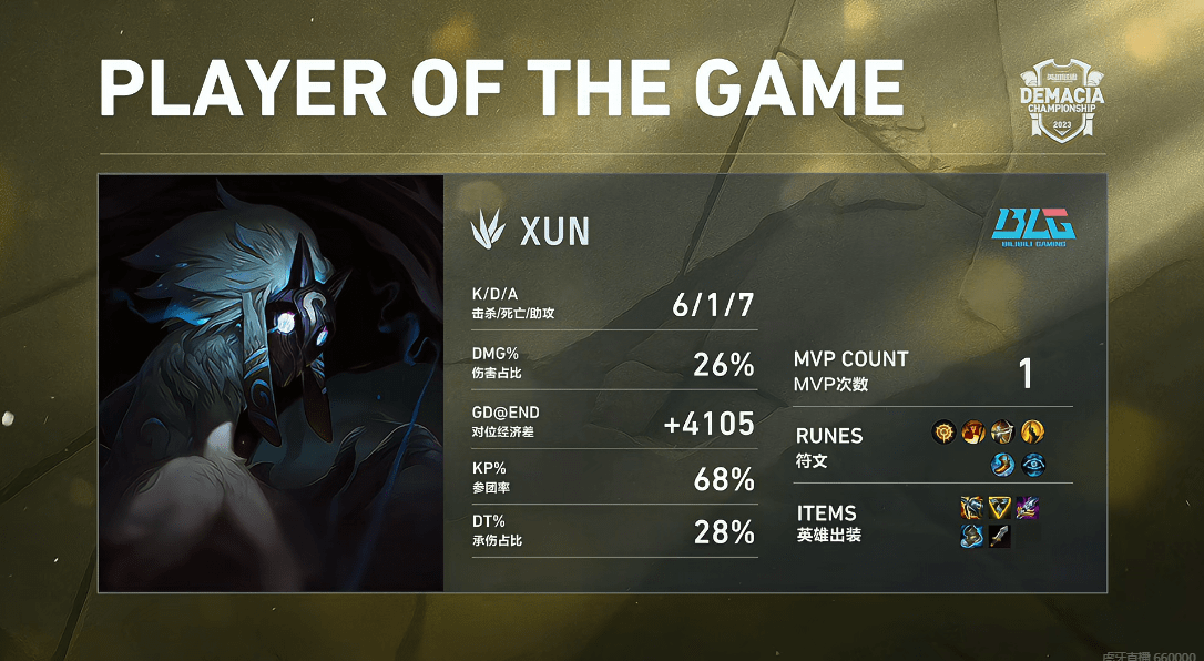 BLG还是因为自己太浪,在第二局优势巨大的情况下连送多次关键击杀,最终被RNG翻盘。但因为两队的实力差距确实很大,随后BLG还是以3-1击败了RNG晋级到了德杯四强。Xun也是在第四局拿出了自己的野核招牌千珏获得MVP,这支BLG的完全体对比过去确实要更强了,至少在国内联赛进入前几问题不大。