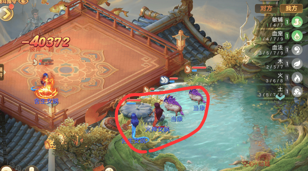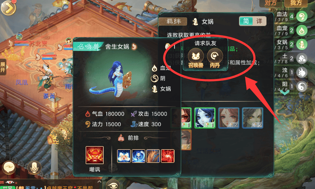 前期的话,主要是拿到火神女娲这个棋子,先用当康、水灵仙、神灵进行过渡,把这几个棋子快速凑成2星召唤兽。中后期主要是拿到铁扇公主、赢鱼、马面、鱼龙舞、垂云叟这几个棋子,凑齐七血法羁绊,这套阵容棋子数量比较多,非常考验大家的运营。