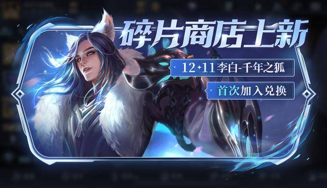 李白-千年之狐将在12月11日首次上架碎片商店,只需要78个皮肤碎片即可免费兑换。而这周没有更新碎片商店,只上架了千年之狐皮肤。