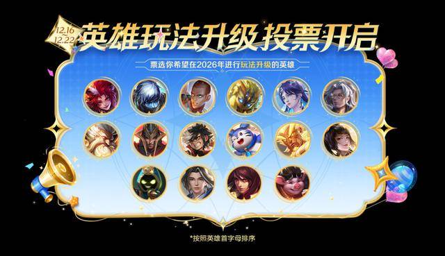 16位英雄将在12月16日开启重做英雄票选活动,其中猪八戒、扁鹊、海月等这些英雄属于热门,其玩家基数比较大,票数第一的英雄将进行玩法升级。