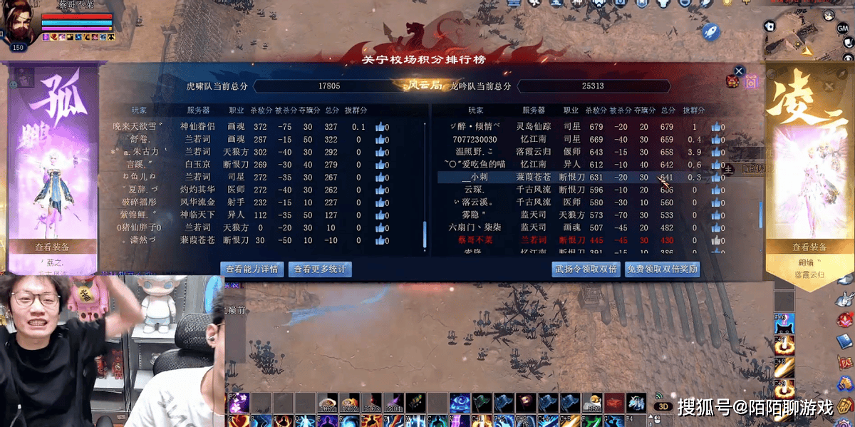 而浮夸在看了好兄弟的操作,之后直接化身“怒吼天尊”杀入对局,吸取经验后采用边缘OB的惜命式打法搭配输出全靠吼的操作使得节目效果瞬间爆炸。不过浮夸虽然打法猥琐但该偷伤害的时候还是非常果断的,因此在死亡更少的情况下浮夸最终打出了754的分数,不仅怒超好兄弟300多分,就连排名也“苟”进了前50% ,不得不说还是相当欢乐的。