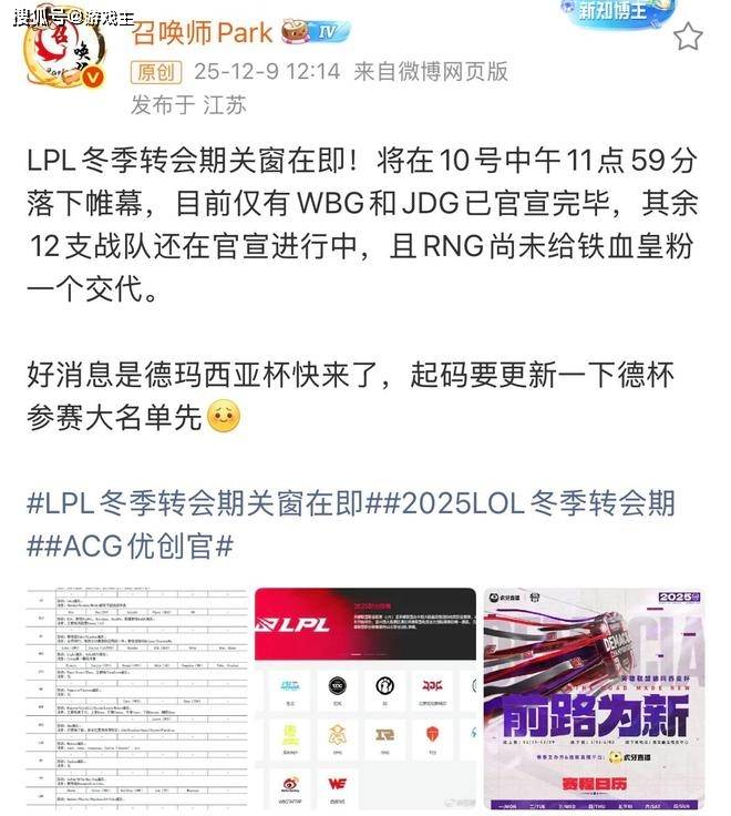 相信绝大多数的玩家对于lpl赛区还是比较熟悉的,作为曾经的世界顶级赛区,这几年里lpl的整体发展是非常迅猛的,战队数量越来越多,导致整体的综合成绩越来越差,甚至这个赛季连最终的决赛都没能进入。冬季转会期开启之后,各大战队都在积极准备,买入顶级选手,尤其是一些资金比较充足的队伍,甚至还组建银河舰队,目标直指S16冠军。目前还有多支战队没有官宣最终的阵容,转会期的窗口马上关闭,今天各大战队应该会扎堆官宣阵容。