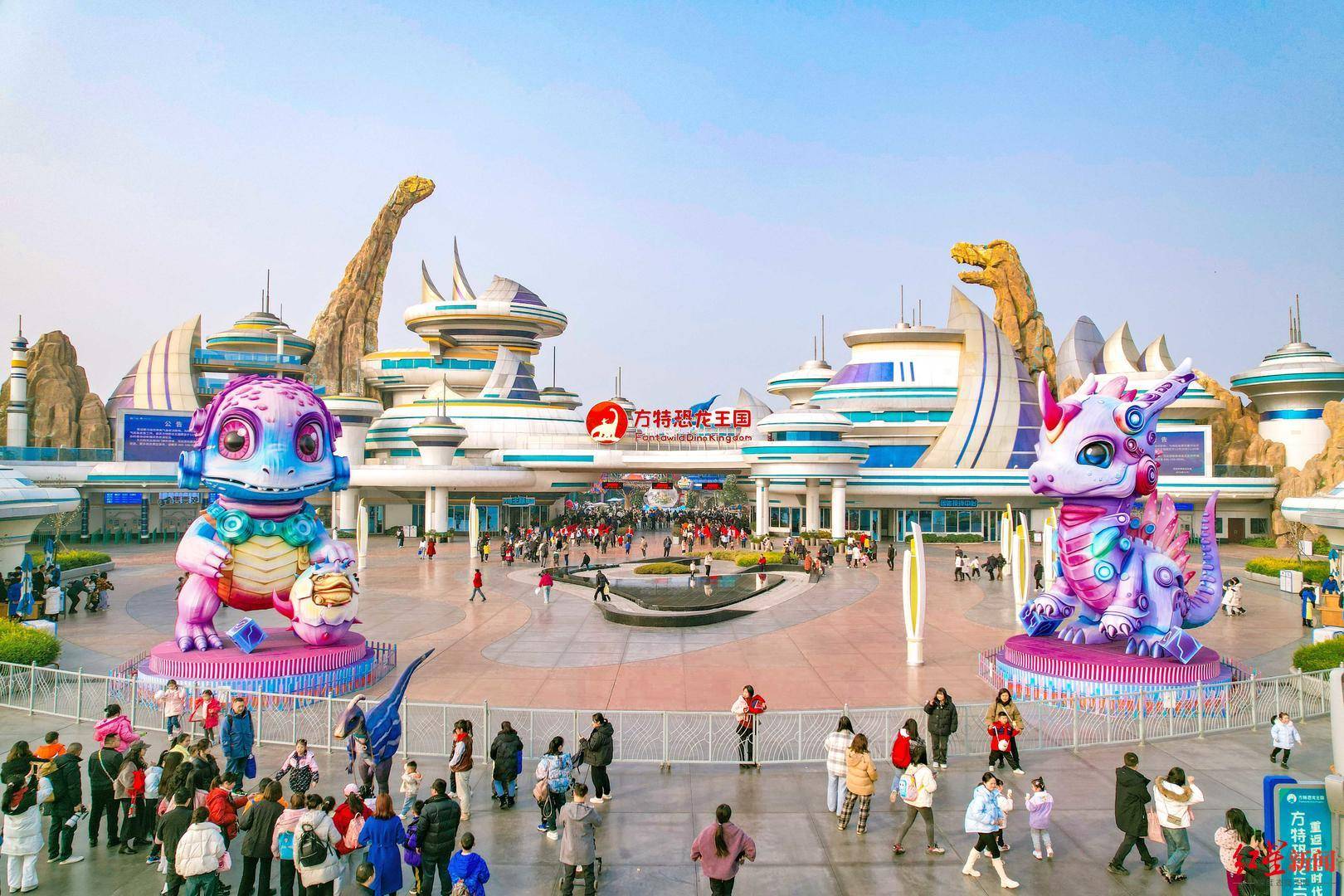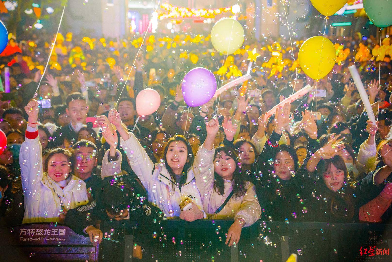 “3、2、1,新年快乐!”随着新年钟声的敲响,我们迎来了2024年。2023年12月31日当天,许多游客选择到位于四川自贡的方特恐龙王国,一边体验丰富多彩的游园项目,一边迎接新年的到来。