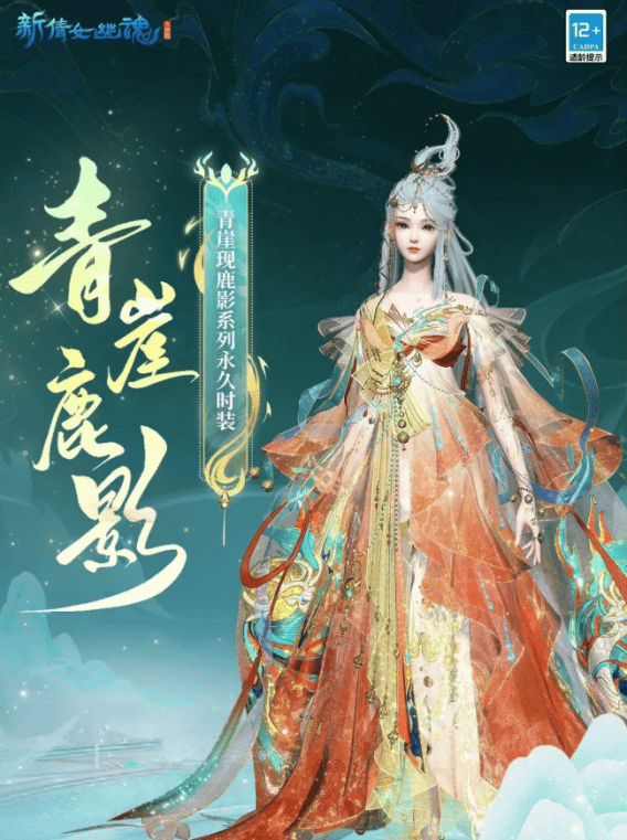 与时装配套的,还有鸾彩点妆的耳饰,以琉璃为羽、金缕为脉,佩戴起来动静皆宜。此外还有背饰、悬饰以及洗练特效都各具特色,和外观搭配十分和谐。青崖现鹿影系列永久时装获取方法现已公布,大家可前往游戏相应界面的“鹿鸣仙踪”系列永久时装活动参与。期待在三界中和你相遇,一起畅快玩耍~