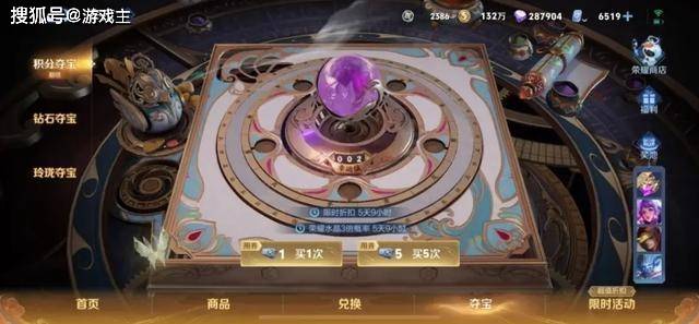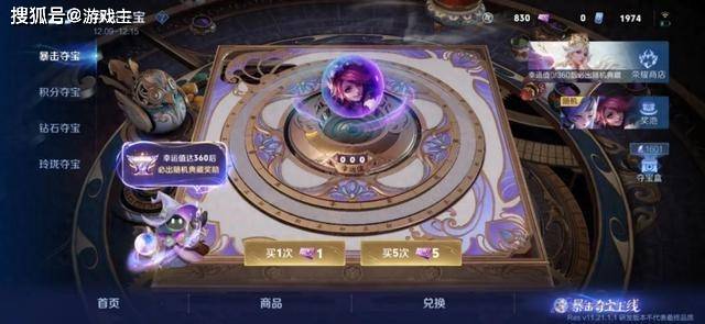 该活动也是抽荣耀水晶的,优势在于能暴击幸运值,让保底变得更少,比如普通的积分夺宝是361保底,而暴击夺宝则是360,每抽还会出现1至10倍暴击。