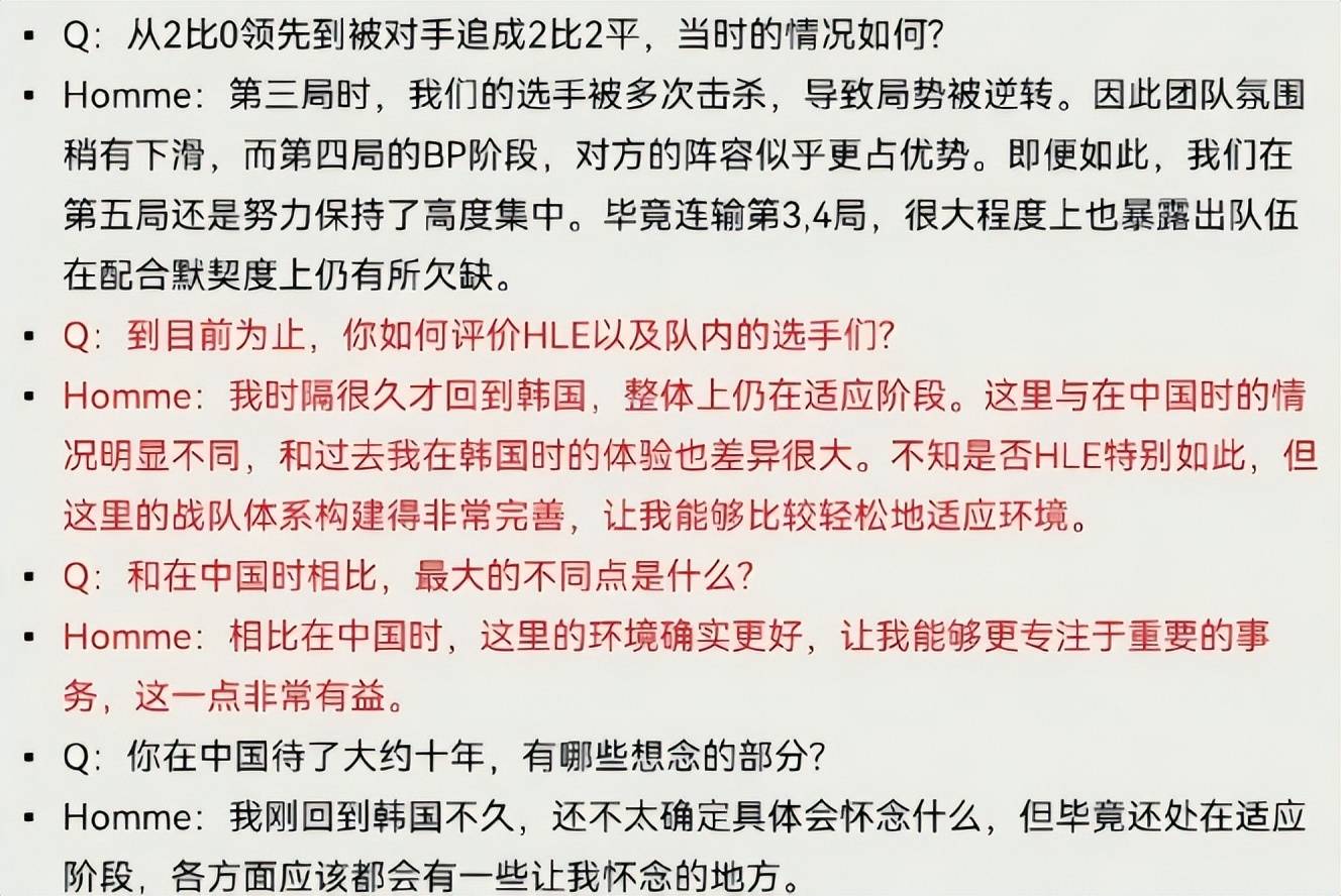 要知道在2022年,Homme接受年度最佳教练采访时,还口口声声说着LPL的赛训更严肃,可一回国,他就变了一副面孔,这实在是让人难以接受。