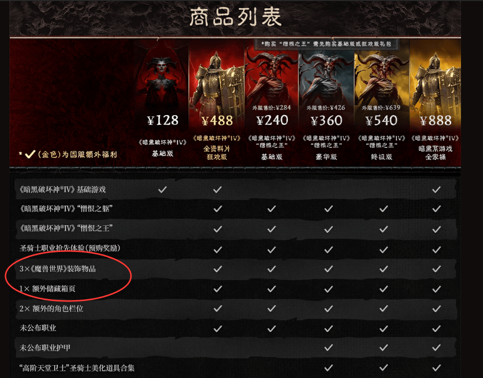 值得一提的是,暗黑4国服在经过2年之后终于在12月12日上线。而购买任何包含“憎恨之王”的版本(国服有5个版本)都能解锁这些装饰品。虽然新资料片要等到4月28日才会正式发布,但对应的魔兽奖励将在预购之后立即解锁。