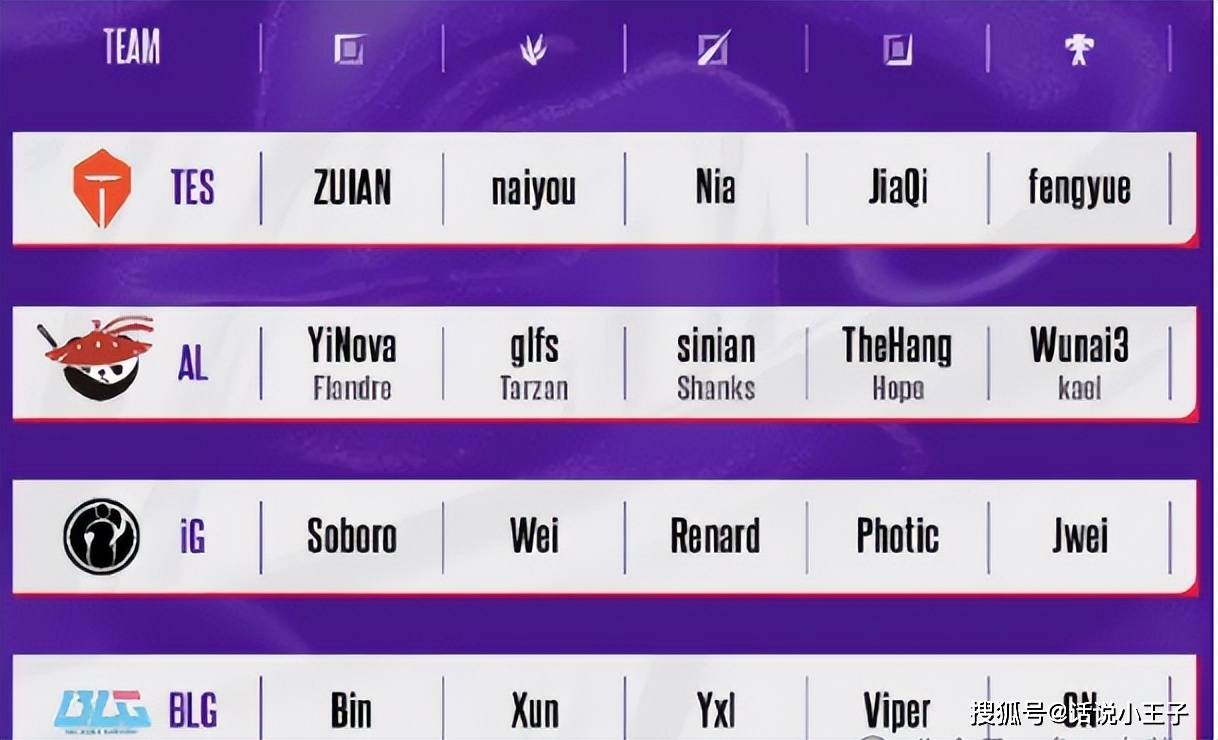 S组的队伍有:BLG,TES,JDG,IG,WBG和AL