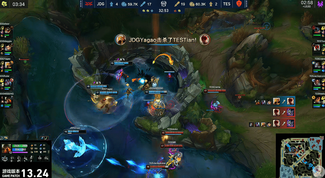决赛级别的较量?JDG首秀和TES激战38分钟43击杀!