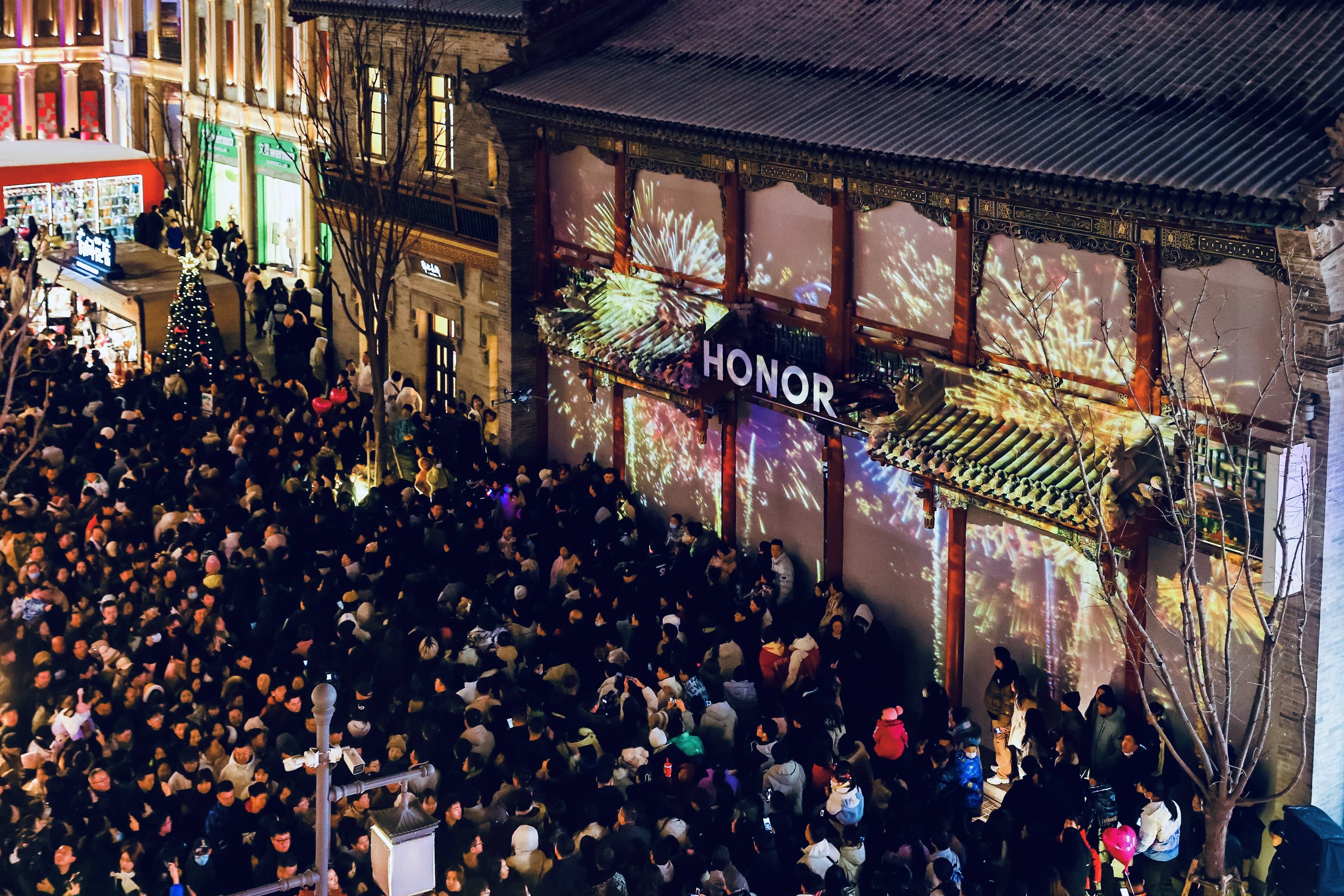 荣耀魔法灯光秀惊艳上演,陪伴消费者一起花样跨年
