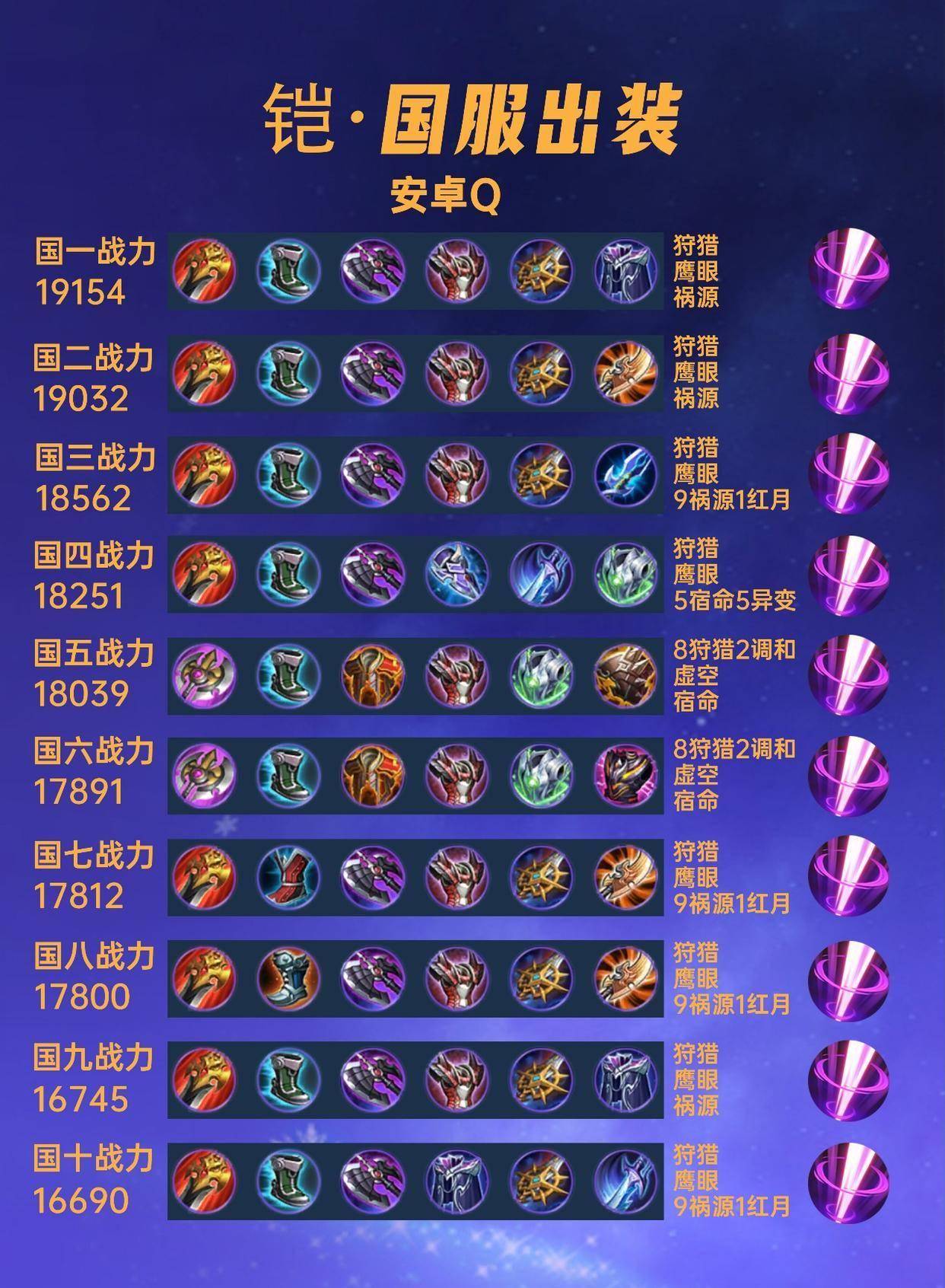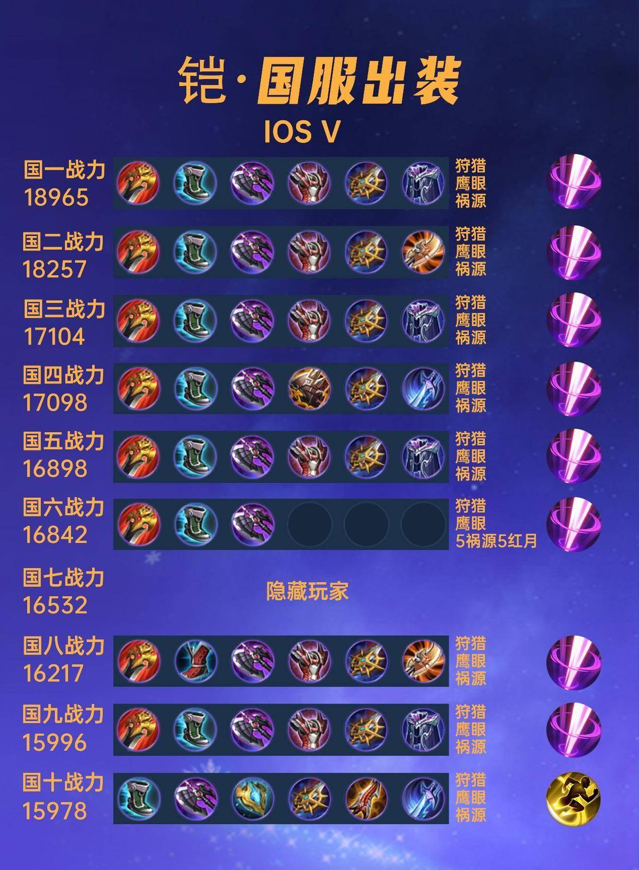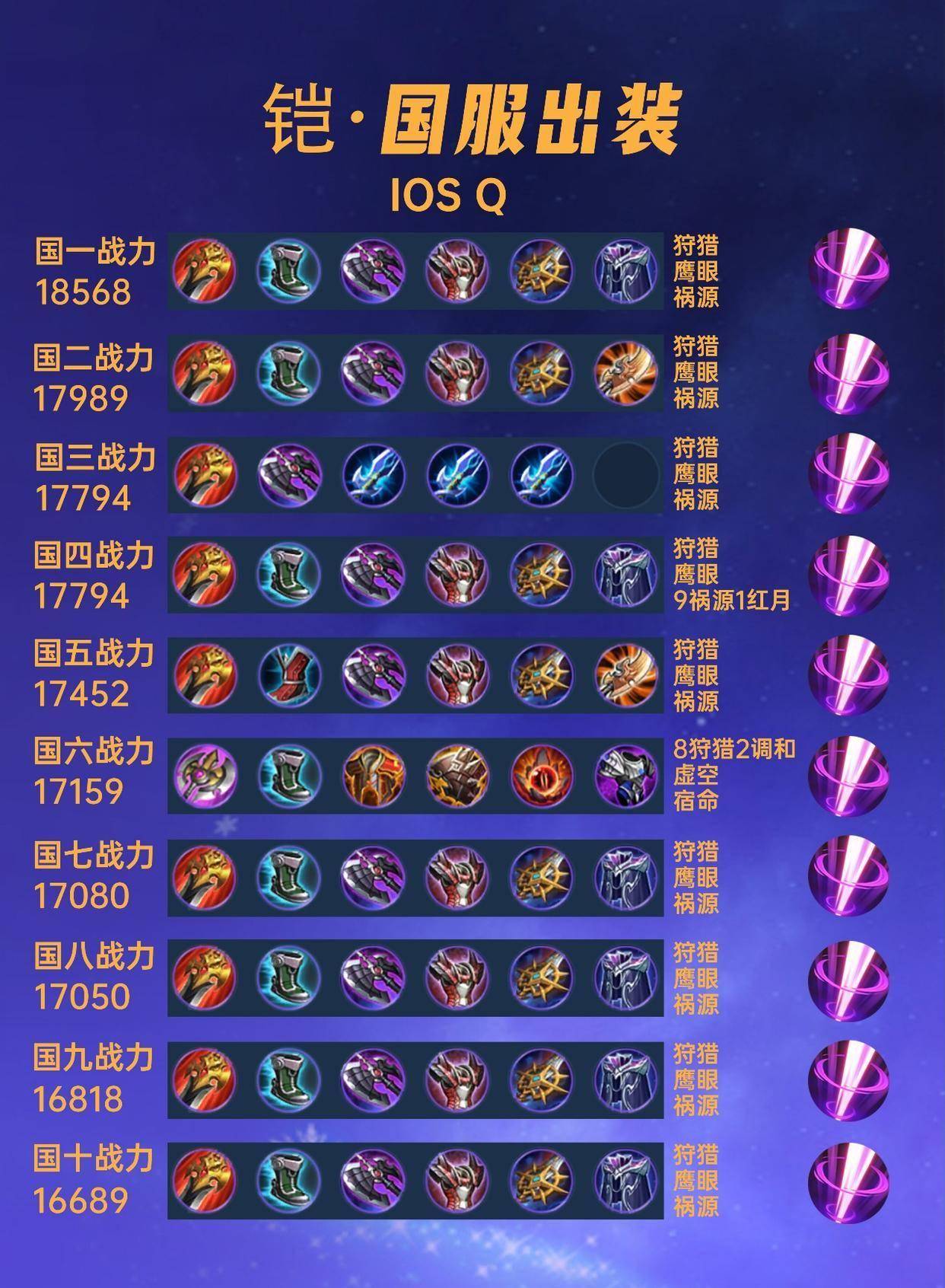 这一篇文章我们来看一下40位国服铠的出装铭文汇总。