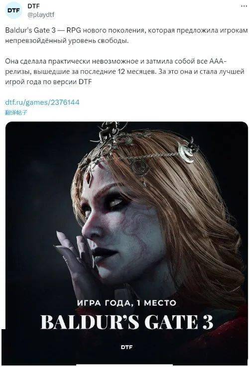相对独立于西方世界的俄罗斯游戏媒体,DTF也于今日选出了他们的2023年度最佳游戏,不过这次他们的口味也与世界主流所见略同——《博德之门3》。