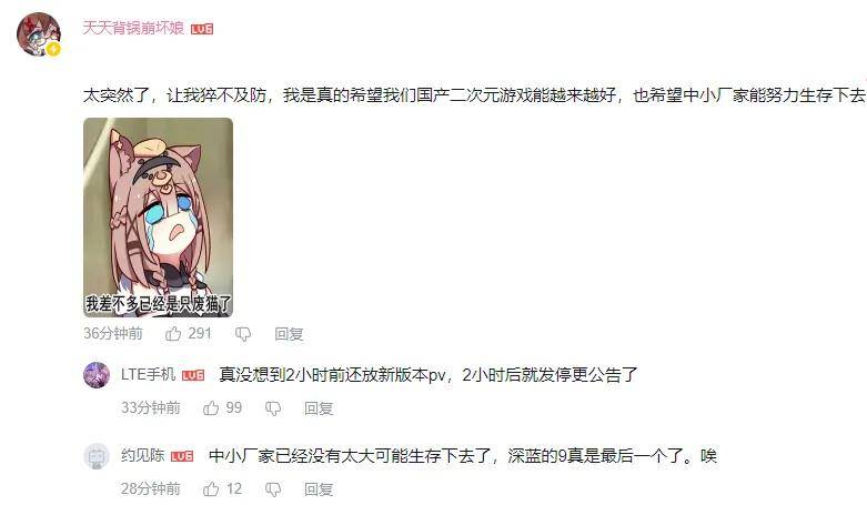 公告表示“从立项到正式公测,我们经历了版号寒冬,也目睹了游戏市场的热烈,随之而来的还有二次元游戏品类的剧变,整体运营成本的高企。我们也深知自己的不足,但始终全力以赴,努力地设计制作每一个版本。但遗憾最终未能达到理想成绩。”