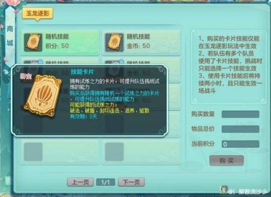 另外还有技能卡片,进入战斗之前使用就能对下一场战斗产生增益效果,一个人买就全队都有效且只有一张有效,没必要氪金买,用前面通关所获得的积分去换就行,也就最后的十几关比较难用得上。