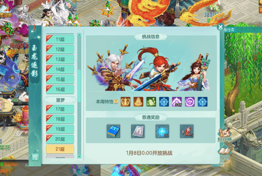 《幻唐志》2024元旦活动,上线了一个全新的周活动——玉龙逐影。活动的形式是五人组队闯关,总共40层,必须一层一层解锁,虽然没有规定一口气打完,但是如果中途有人退出,重新组队的话就只能从队伍中通关层数最低的队友所在层数开始打。