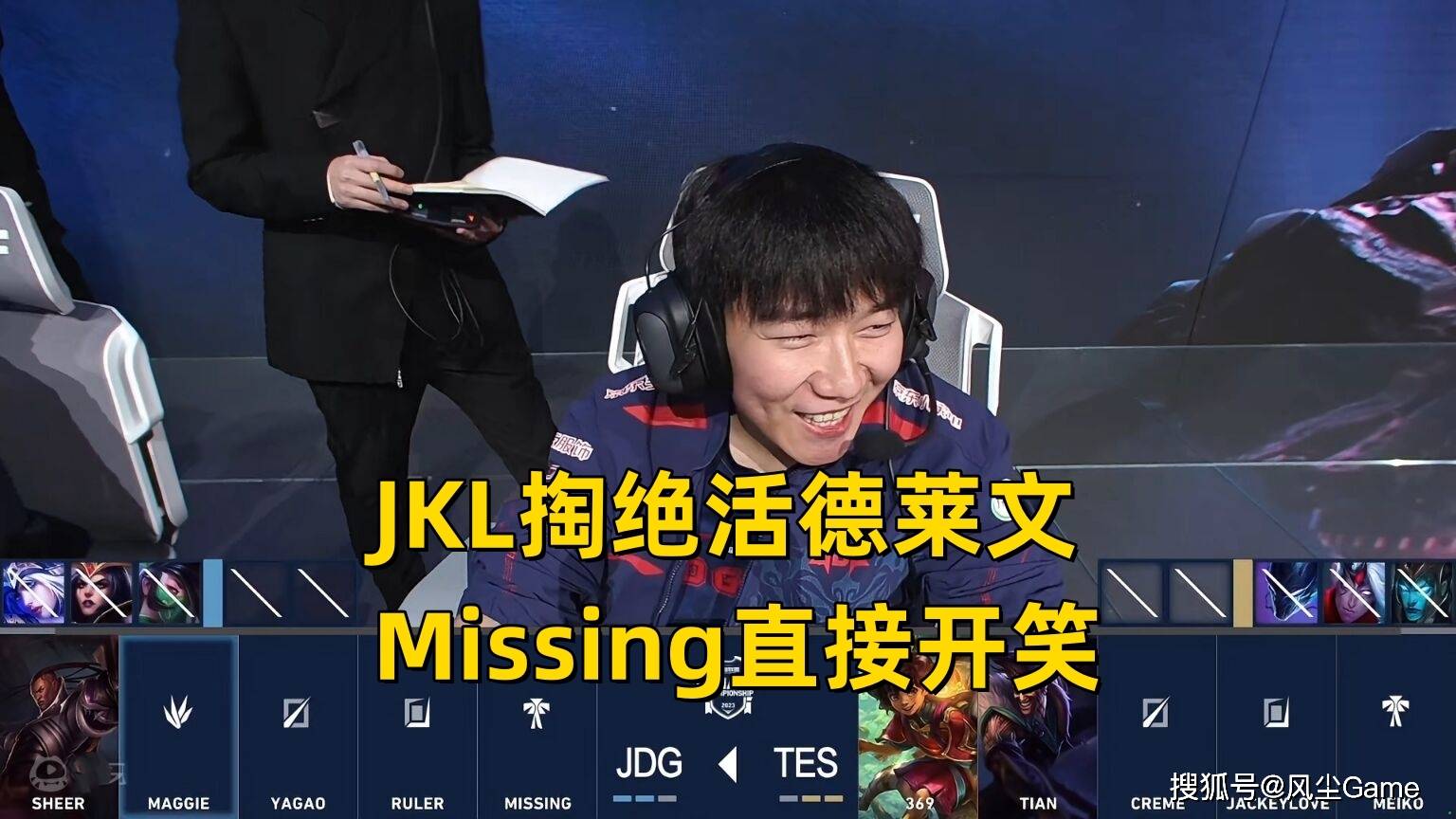这场淘汰赛中,TES双C可以说说绝活掏尽了,小奶油的阿卡丽、阿水的塞纳、德莱文,都是生死局才会拿的英雄,虽然整体表现不错,但最终的结果不尽人意,在第五局阿水一选德莱文时,JDG辅助Missing,直接毫不掩饰的开笑了,这波BP决策,让对手都感到好笑了。