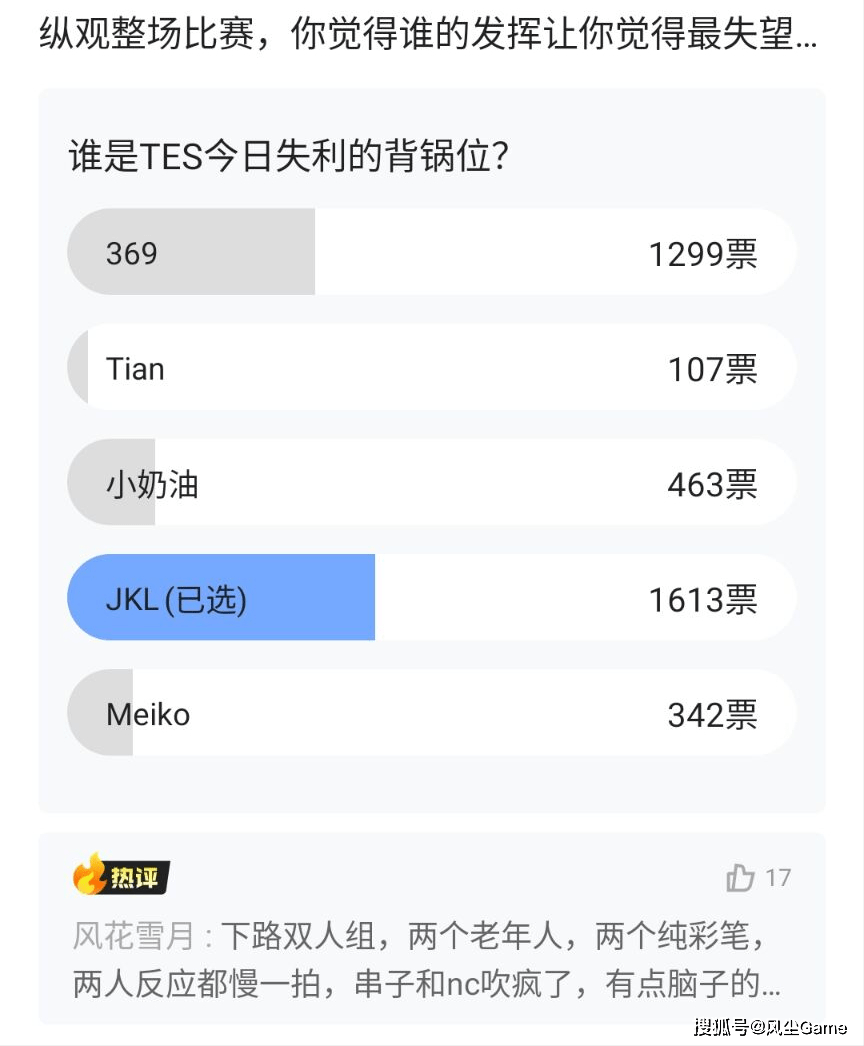 在小组赛环节,TES以全胜战绩出线,全员的表现都很亮眼,粉丝也看好滔搏,新赛季能拿到一个好的成绩,但对上非全主力的JDG,TES却是被打得有些找不着北,Meiko加JKL的组合,面对上最强双人路,打得着实吃力,尺帝的统治力太过夸张,连双冠组合都难以抗衡。