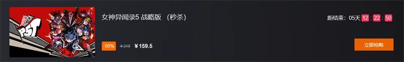 《女神异闻录5 战略版》原价 319 元,Steam 史低也要 239 元。本作发售不过一个多月的时间,杉果这次直接 -50% 半价秒杀,价格已经触底!尽管现在还有一定存货,但各位还是欲购从速,避免错过福利~
