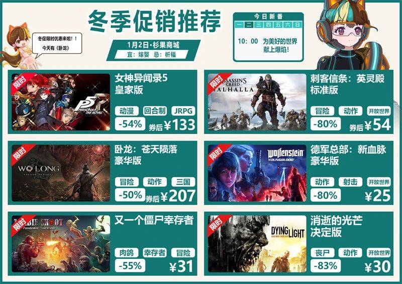 折扣持续 24 小时,次日中午 12 时刷新游戏阵容。如果有心仪的作品,记得看好折扣时间,不要错过福利!