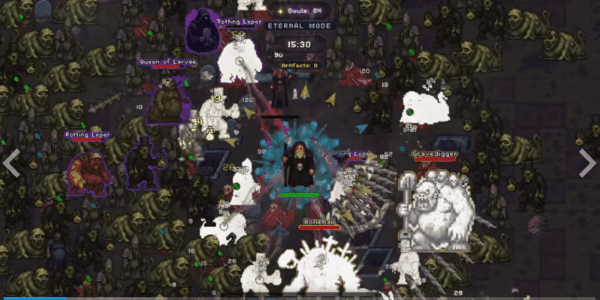 和多数小成本的弹幕Roguelike游戏一样,这款游戏的敌人会从画面的四面八方出现,玩家操作的人物则会自动射出弹幕,随着等级的提升,会解锁更强大的子弹、武器以及魔法,游戏也宣称支持多国语言(当然都是AI翻译的)。
