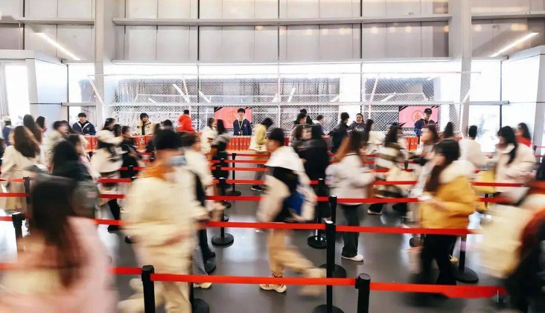 当天的气温大致处于8-10度,有些寒冷,但观众们对此无动于衷。陆续不断地有人加入到队列的末尾。到了下午15点,场馆安检口已经横向排出近10条长龙。在躁动的观赛氛围影响下,不仅使天气显得不那么寒冷了,前来观赛的人群也开始变得善于交谈起来,或是同一战队粉丝在闲聊中产生共鸣,或是讨论两支队伍谁能赢得最终的冠军而引发的观点碰撞......