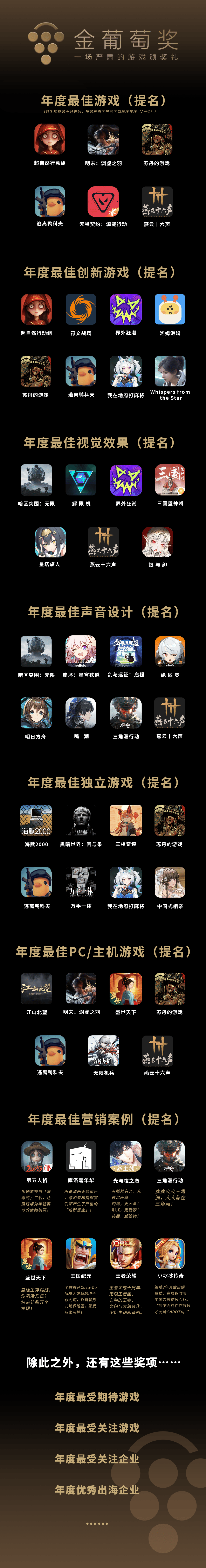 提名揭晓的同时,我们已邀请超过百位资深制作人、游戏公司高管,以及美术、营销、声音领域的专家组成评审团,他们将共同评选出2025年金葡萄奖「最佳类」获奖名单。