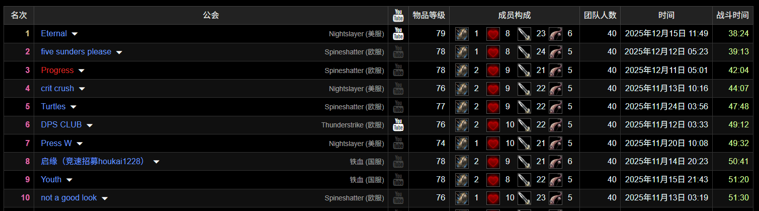 国服公会目前排名最高是铁1的<启源>,排名第8。