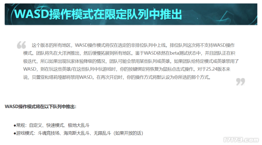 不得不说,拳头还是很有先见之明的,因为WASD模式上线后并未如预期般广受好评,反而在老玩家群体中引发不小争议。