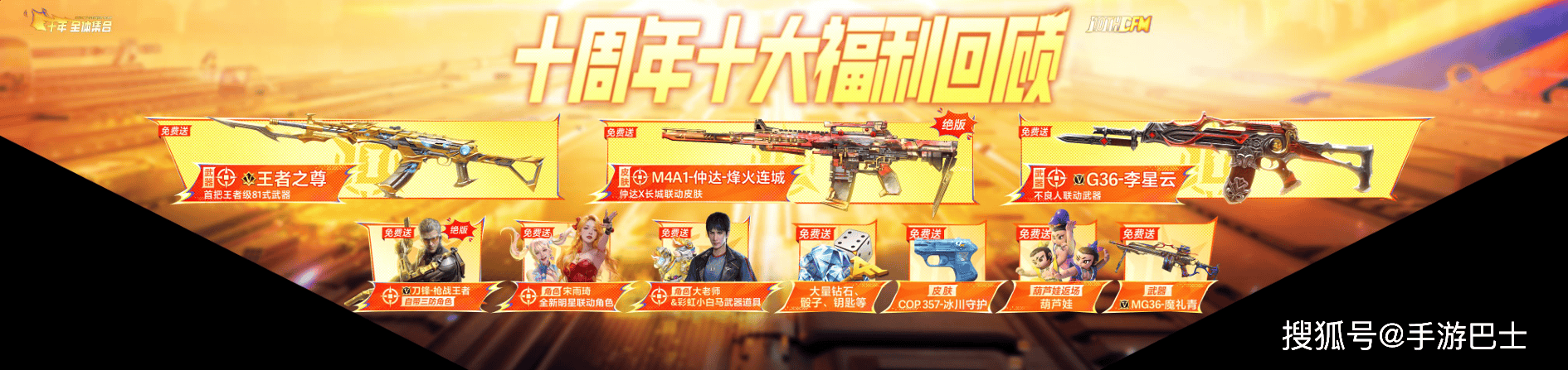 十年火线,百炼成金!从王者武器免费送到国际赛事启航,从火线公益到多款联动,感谢各位CFer一路以来的支持与陪伴,让我们相约下一个十年!