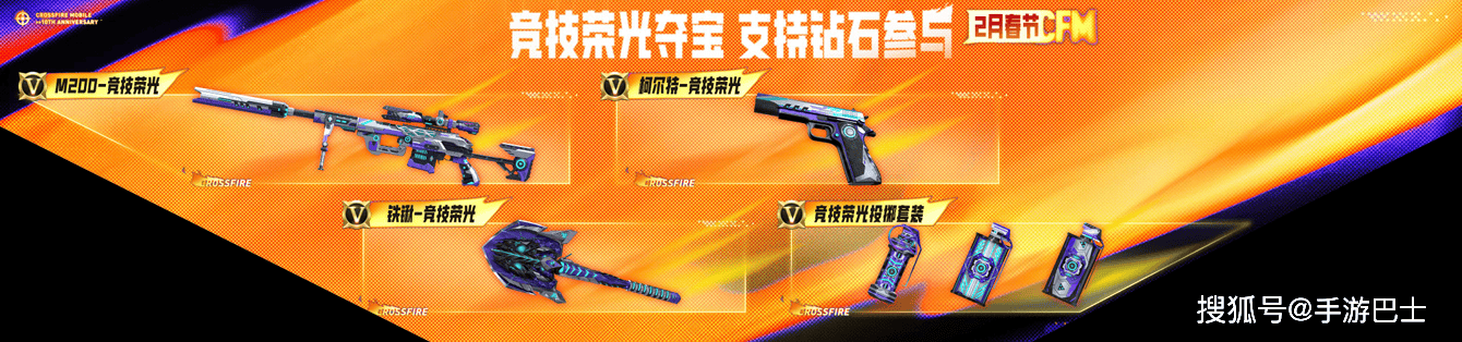 钻石夺宝也会在春节迎来新的强力套装——竞技荣光套装登场,主武器的M200-竞技荣光希望能为大家带来更好的手感,一枪入魂,竞逐巅峰,铸就荣光。